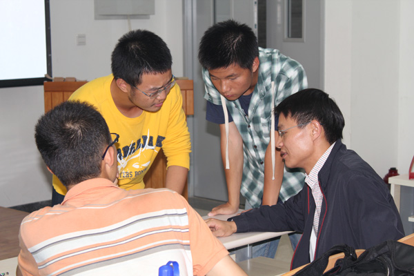 在朗诵会正式开始前和休息的时间里,各位老师、领导还与同学们进行了亲切的交流。班主任冯伟杰结合自己的专业向同学们介绍了有关竞赛方面的情况,李卫华学长则根据自己的的经历,给同学们的学习生活提出了实际有效的建议,传授了许多宝贵的经验。整个过程气氛轻松活跃,同学们更是在聆听与提问中获益匪浅。