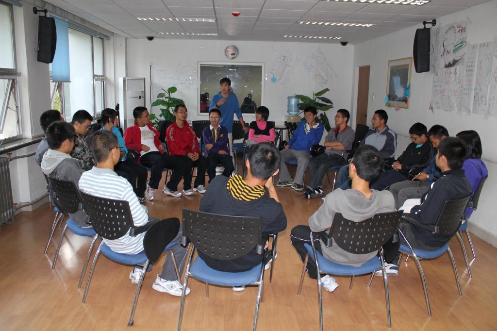 两个班的同学分上下午,各自进行了半天的素质拓展训练。训练包括室内和室外两部分。轻松的开场小游戏之后,在教官的指导下,同学们成功地完成了训练中的各种项目,包括体现团队分工意识的组队活动、考察人事调配能力的“极速60秒”、培养信任与被信任意识的“信任背摔”和考验团队协作能力的“毕业墙逃生”。